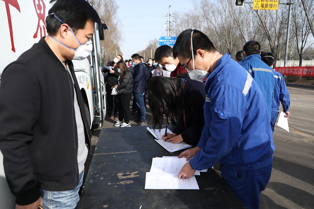 2月19日,公司組織居家隔離期滿的職工在廠區(qū)1號(hào)門口進(jìn)行返廠、返崗前身體檢查。